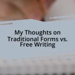 Posted inPoetry Forms My Thoughts on Traditional Forms vs. Free Writing Posted by By Evelyn Hawthorne 13/01/2025 Key takeaways: Traditional writing provides structured frameworks that enhance clarity, organization, and critical thinking skills.…