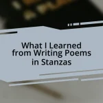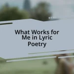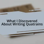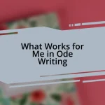 Posted inPoetry Forms What Works for Me in Ode Writing Posted by By Evelyn Hawthorne 15/01/2025 Key takeaways: Vivid imagery, personal reflection, and tone significantly enhance the emotional depth of odes.…